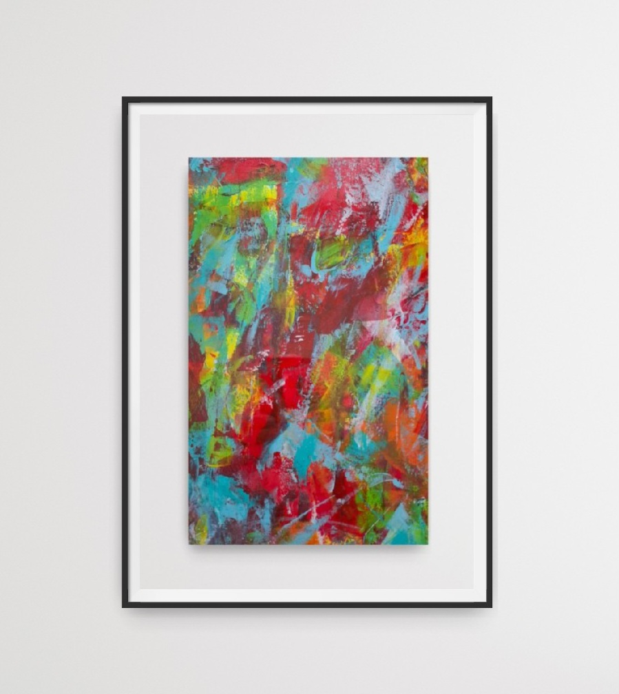 Es überzeugt mit einer feinen Gestaltung und lädt zum Träumen ein. Verschiedene Rottöne sind die Hauptfarben. Ein Bild mit vielen Schichten, die dem Bild Tiefe geben. Das Bild sollte mit einem weissen Passpartout gerahmt werden. Dieser weisse Rahmen lässt die Farben leuchten und macht das Bild noch spannender.